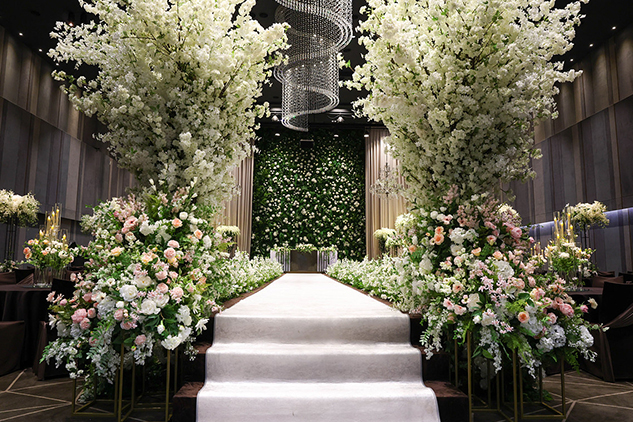 버진로드 양쪽의 꽃장식도 너무 고급스럽고, 신랑신부를 위한 조명까지 완벽했어요!