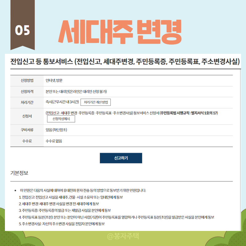 또한, 혼인신고를 하고 혼인관계를 유지하고 있는 경우에는 30세가 아니더라도 세대주를 변경할 수 있습니다. 젊을수록 더욱 엄격한 조건을 충족해야 하므로, 자격요건을 꼼꼼히 확인해야 할 것입니다. 가장 중요한 것은 경제활동을 하지 않는 경우에는 독립하더라도 세대주를 변경할 수 없다는 점을 명심해야 합니다. 이렇게 아파트 세대주를 바꾸면 종합부동산세, 양도세 등 각종 세금을 절약할 수 있고, 청약저축이나 전월세 소득공제 혜택도 받을 수 있다. 또한, 독립된 세대주이신 경우 신청 시 더 유리할 수도 있습니다. 서울이나 경기 지역 등 경쟁이 치열한 지역에 거주하는 경우에는 가장을 바꾸는 것을 전략적으로 고려하는 것이 좋습니다. 변경은 정부24 홈페이지를 통해 온라인으로 하거나, 지역 주민센터를 직접 방문하면 쉽게 변경할 수 있다.